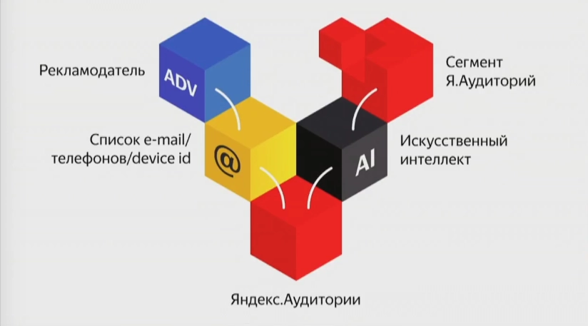 Яндекс. Аудитории позволяет использовать персональные данные о любом пользователе. То есть благодаря оставленному номеру телефона, почтовому ящику mail.ru, можно собрать огромную аудиторию. Также есть возможность использования идентификатора мобильных телефонов, данные о которых далее поступят Директ или Дисплей, откуда не составит труда сделать персональное предложение. Все это значительно облегчает работу и приносит все больше плодов. Как вам такие возможности?