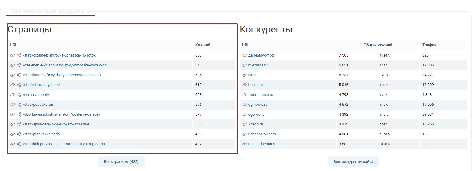Далее листаем вниз и находим таблицу с конкурентами.