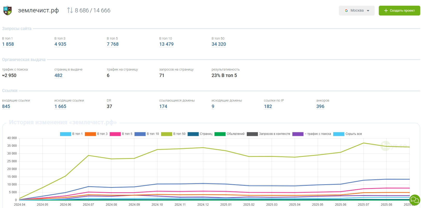 Заходим на сайт. Регистрируем аккаунт. Далее вбиваем свой сайт, выбираем регион, нажимаем поиск: