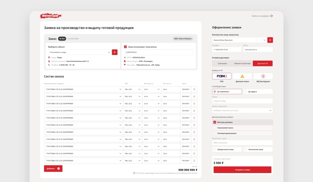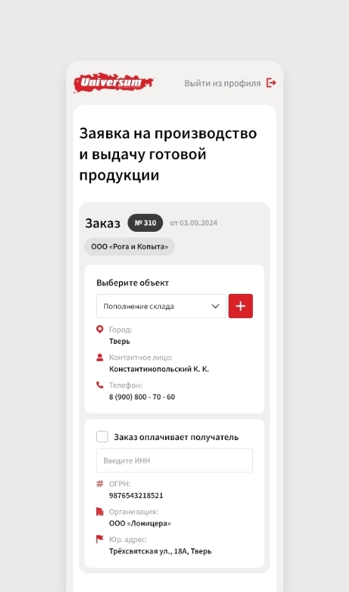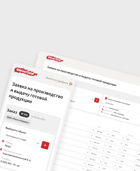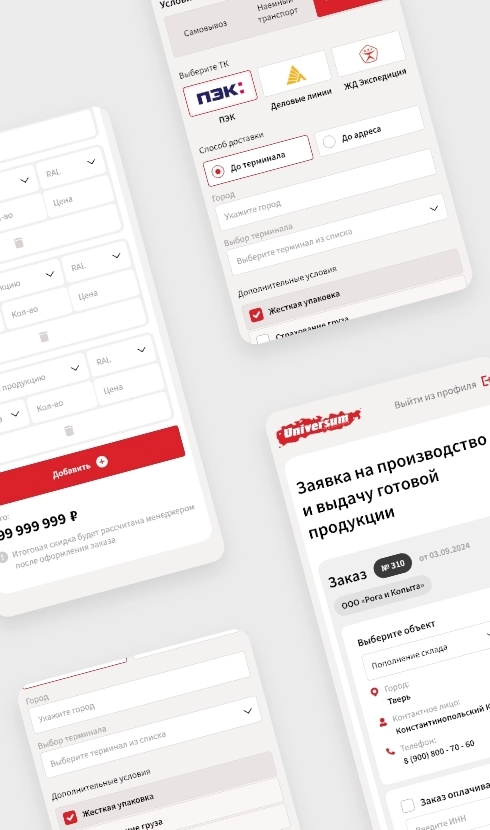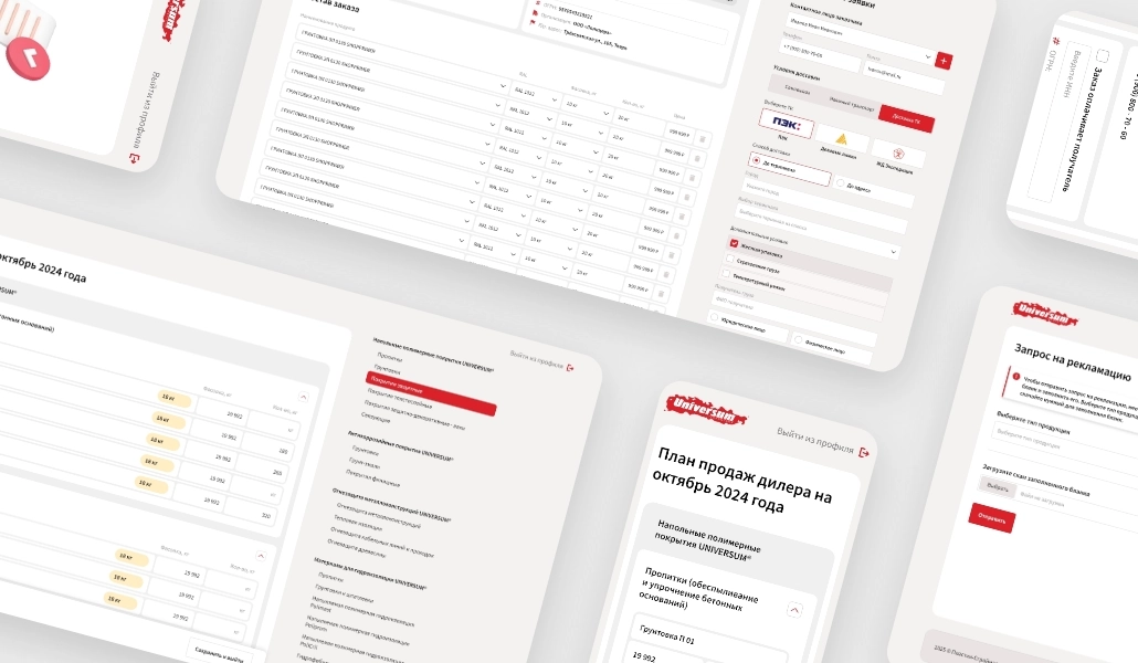 Завод «Universum» работает со множеством промышленных и строительных компаний, с которыми необходимо поддерживать поставки продукции, улаживать логистику и обслуживать рекламации. Все это огромная нагрузка, которую необходимо автоматизировать. Для этого мы создали решение на базе 1С Битрикс, в котором у каждого дилера есть свой личный кабинет, в котором можно сформировать заказ, доставку, и направить отчет о продажах.