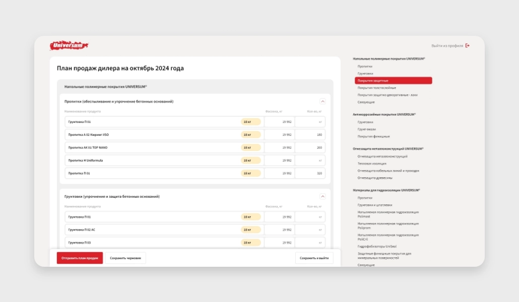 Производитель инновационных полимерных покрытий для промышленного применения. Чтобы автоматизировать процессы и сделать взаимодействие со своими клиентами лучше, компания обратилась к нам с задачей разработать и внедрить личный кабинет для дилеров реализующих их продукцию.