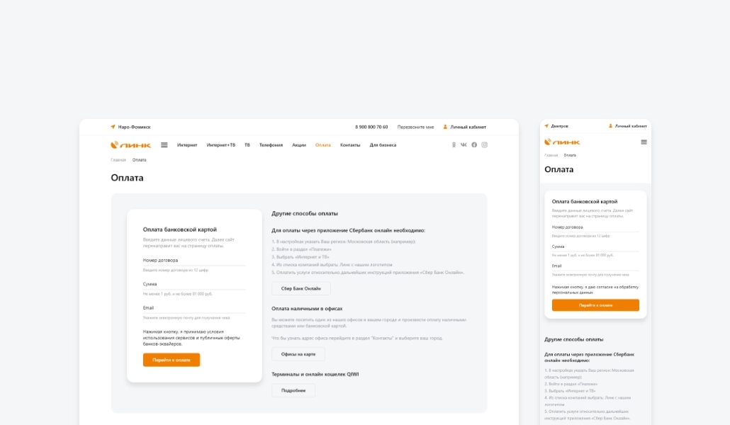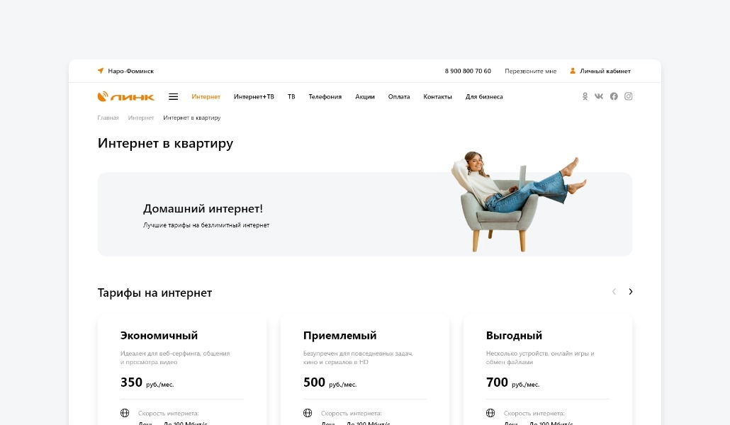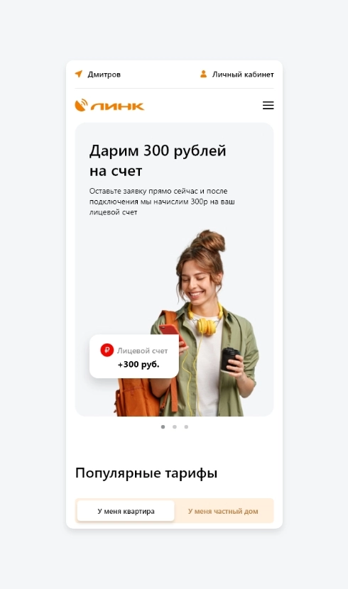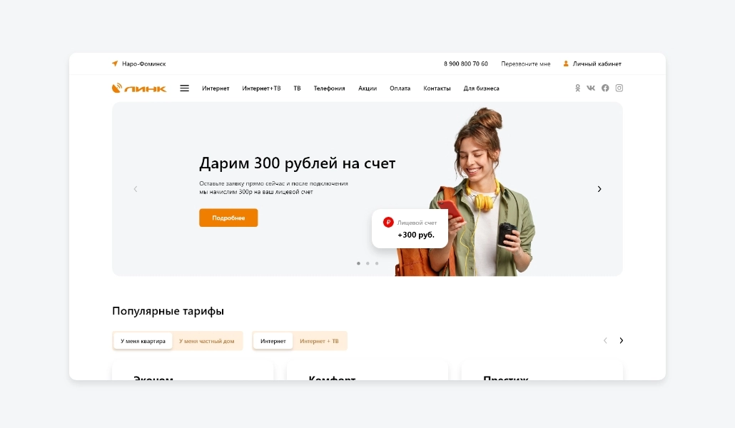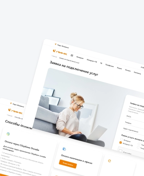 Интернет-провайдер “Линк” обеспечивает более 25 000 жителей московской области интернетом и телевидением. Кредо компании - «Интернет в каждый дом». Компания обратилась к нам с задачей создать новый корпоративный сайт на котором человек сможет посмотреть информацию о компании и ее услугах, а также оставить заявку на подключение.