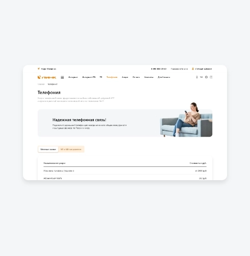 - Часть клиентов компании это юридические лица. Для них мы создали на сайте отдельный раздел с описанием доступных услуг.