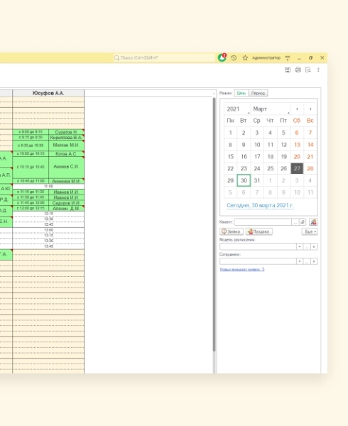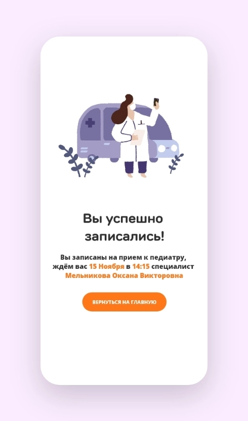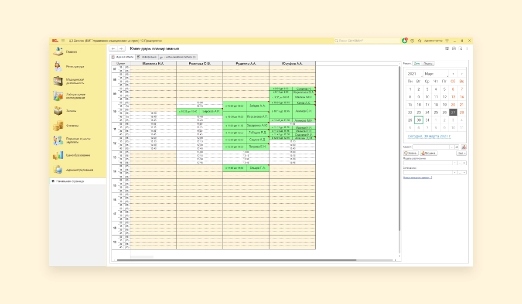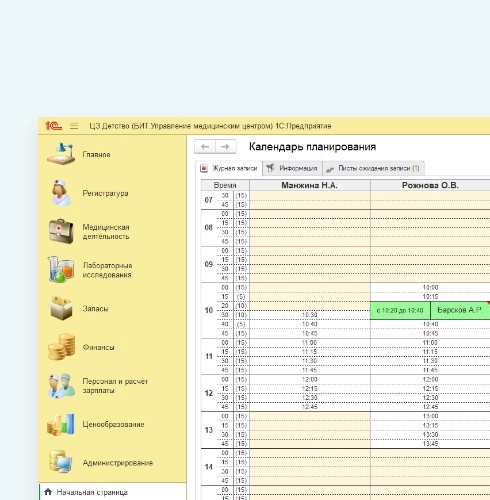Услуги, врачи и их расписание, а также записи пользователей автоматически синхронизируются с 1С.