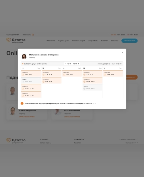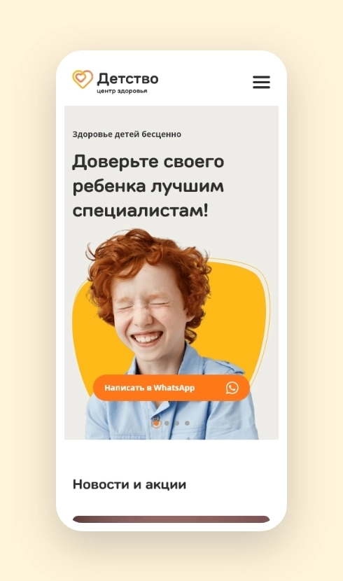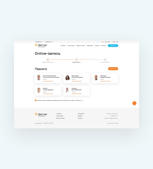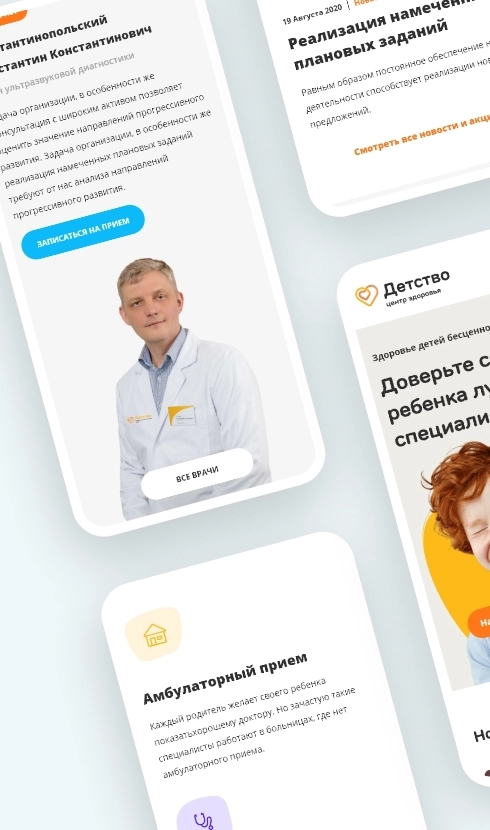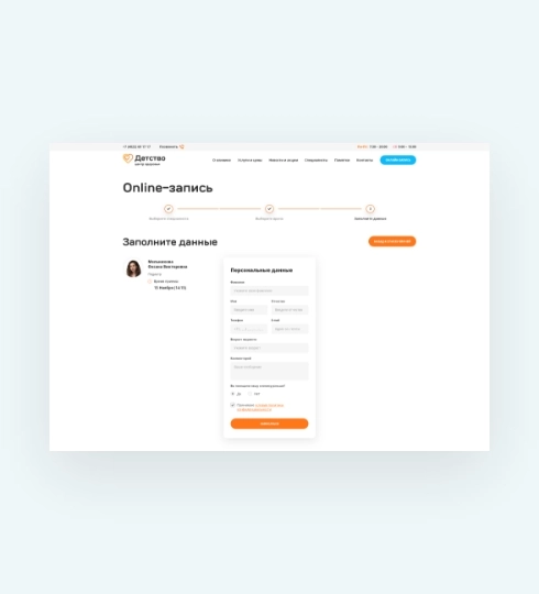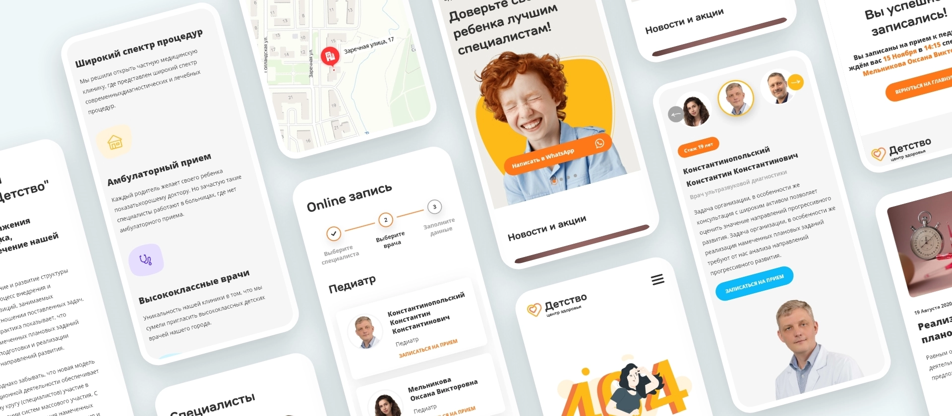 Нашей задачей было создать удобный сайт, на котором родителям будет легко и удобно найти нужную информацию и записаться на прием. Дизайн создан в яркой цветовой гамме, но без лишней мишуры. Большинство сайтов детской тематики грешат излишней яркостью и веселостью.